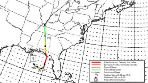 Named Amanda in honor of a Union ship driven ashore, this was the only May U.S. hurricane landfall on record. It came ashore in the Florida Panhandle and killed at least 110.