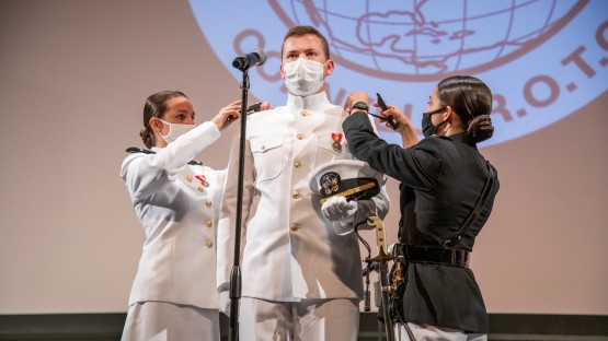 Unrath was one of 21 graduating Cornell seniors commissioned as Army, Air Force or Marine Corps second lieutenants or as Navy ensigns during the hybrid ceremony hosted in Bailey Hall and streamed to participants and viewers as far away as Japan.