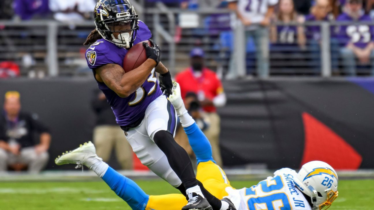 Injuries have wreaked havoc on Baltimore's backfield all season. The Ravens' top two backs -- J.K. Dobbins and Gus Edwards -- suffered season-ending knee injuries just weeks before the start of the regular season. Justice Hill became Baltimore's third running back to sustain a season-ending injury before the season opener when he tore an Achilles.